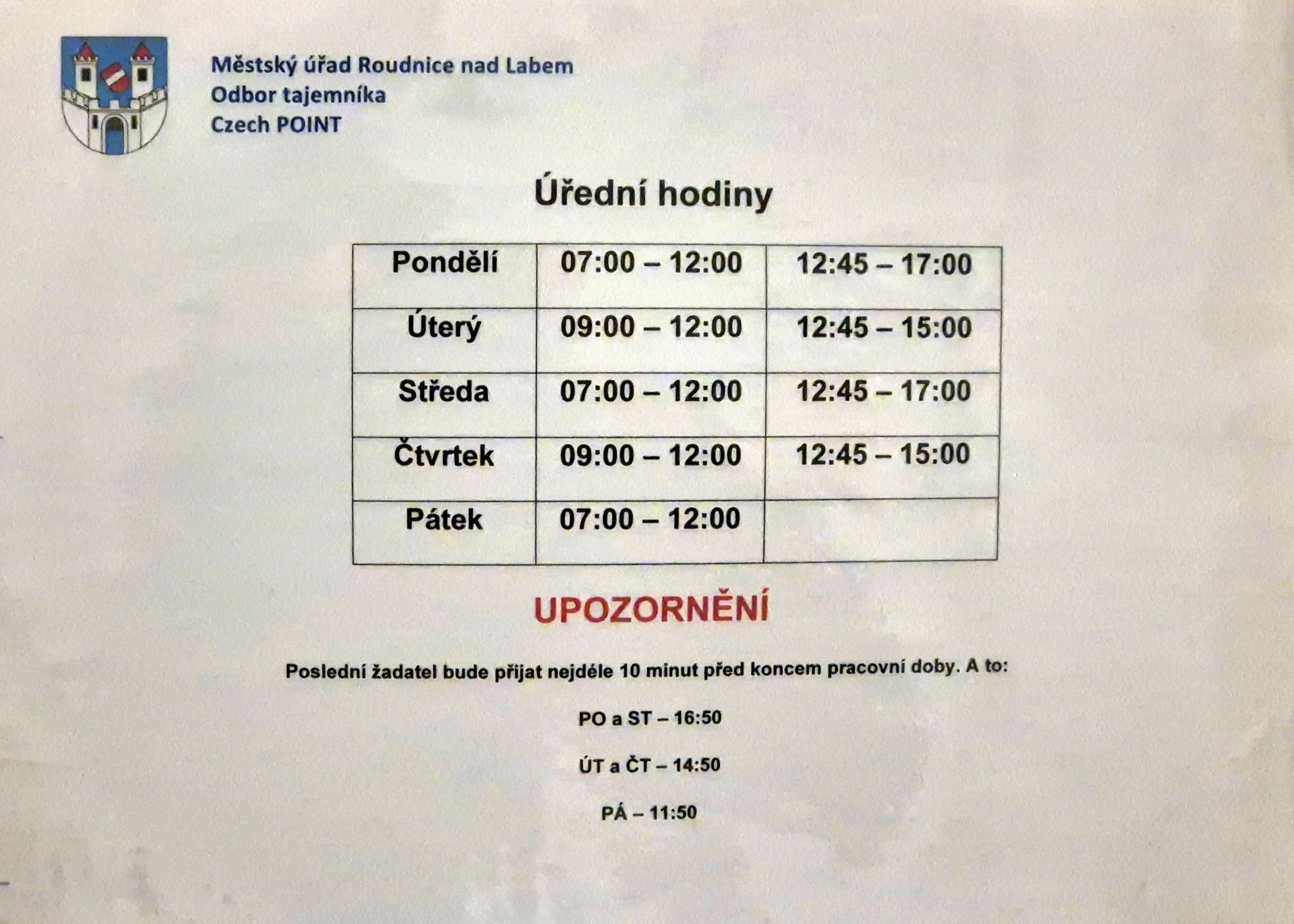 Kancelář pro ověřování a Czech POINT je otevřena v nových úředních hodinách! V pondělí, středu a pátek od 7:00 / v úterý a čtvrtek od 9:00. Přístupná je stále z budovy radnice i přímo z Karlova náměstí a slouží jako její bezbariérový vchod.