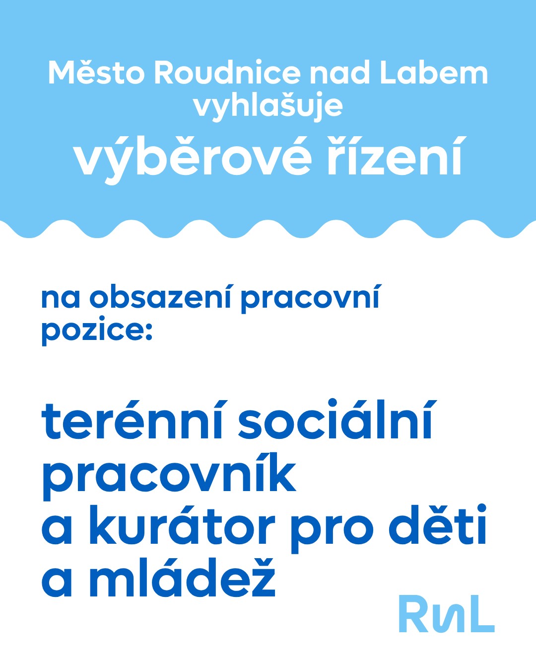 Město Roudnice nad Labem vyhlašuje výběrové řízení na obsazení pracovní pozice terénní sociální pracovník a kurátor pro děti a mládež odboru sociálně-právní ochrany dětí. Přihlášky v listinné nebo elektronické podobě přijímáme do 14. května 2026. Detailní informace o nabízené pozici naleznete v sekci personálních výběrových řízení.